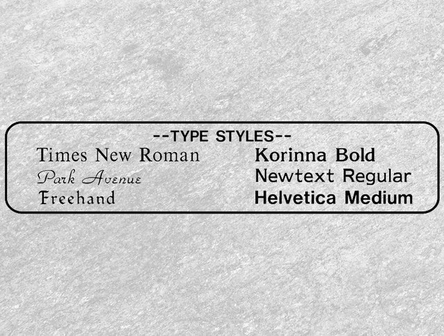 Is the font size standard or can we decide on larger / smaller sizes. Also, I can't find examples of your listed fonts.